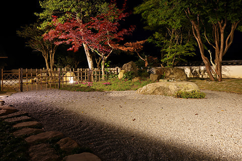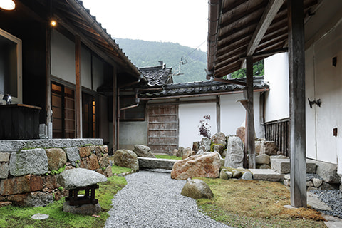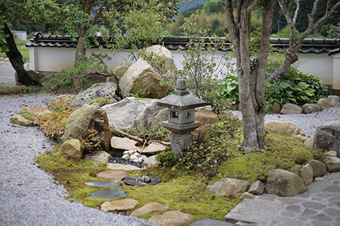 押柄氏(屋号:庭風)作庭の枯山水のお庭がゲストを四季折々、温かく迎えてくれます。
