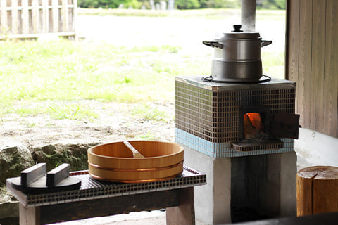 設備(露天風呂、薪ストーブ、キッチン等)について説明いたします。